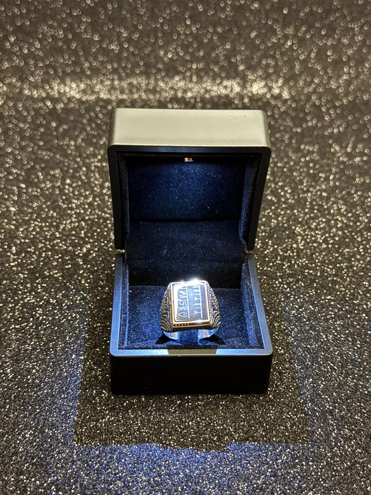 Bu yüzük… Dışarıdan bakıldığında sade, hatta sıradan görünebilir. Fakat içinde nice ledünnî sırları, manevî kudreti ve hikmetli niyetleri taşıyan bir hazinedir. Mürekkep ile değil, kazıma ile vücut bulmuş; harfleri kalemle değil, kalple işlenmiştir. Çünkü bazı sırlar yalnızca yazılmaz — taşa, mermere, kalbe kazınır. Her çizik bir dua gibidir; her oyuk bir niyetin yankısıdır.